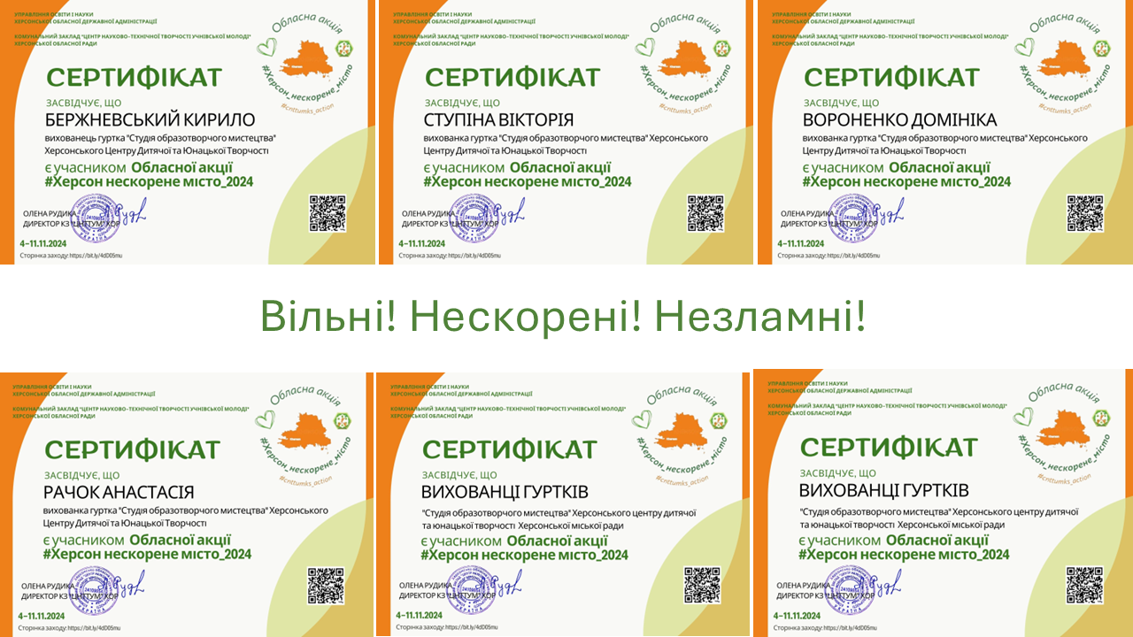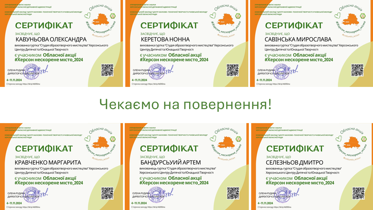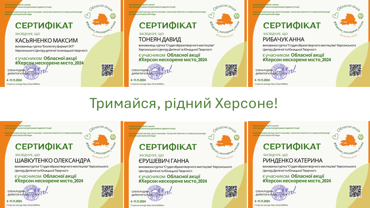30 сертифікатів! Так багато, бо любимо наш Херсон! Всім серцем і душею! Дякуємо КЗ "Центр науково-технічної творчості учнівської молоді" Херсонської обласної ради за такі теплі, рідні ініціативи, що об'єднують та мотивують!