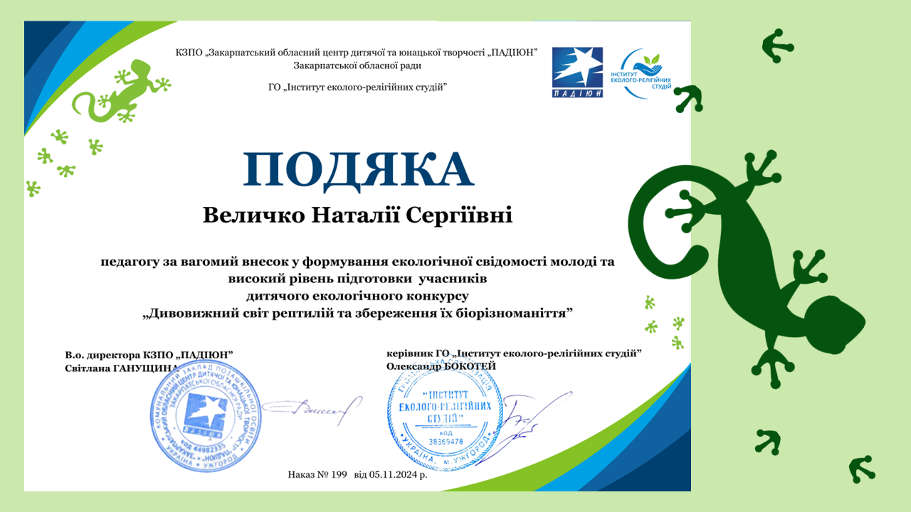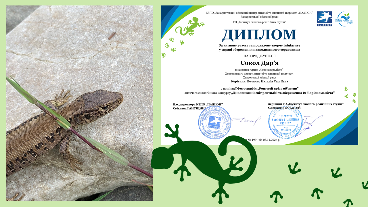 Минулого разу перемогу принесли горобчики у дзьобику, зараз — рептилії на хвостику :) Й не дивно! Це ж вихованці гуртків "Фотонатуралісти" (керівниця - Наталя Величко).