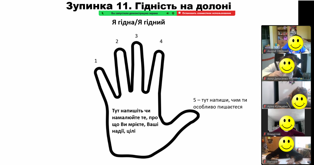 А ще ми гідність малювали :) Долоньками, що символізують унікальність кожного з нас.