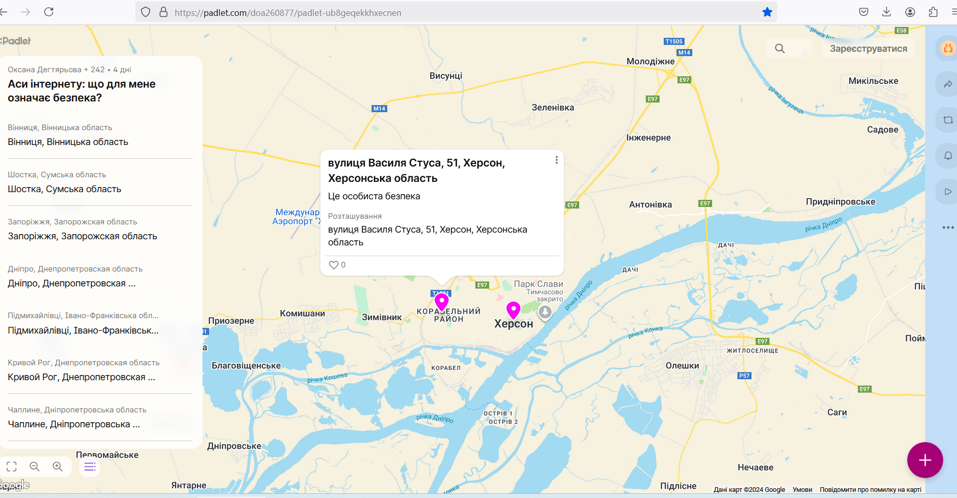 Ініціатором проведення цьогорічних тематичних онлайн-активностей став керівник гуртків «Екологія у форматі ІКТ» Роман Муржак. «Гідність в інтернеті – гідність у житті» та «Кібергідність» – головні акценти онлайн-зустрічей, під час яких вихованці гуртків та здобувачі освіти ЗЗСО № 4, 32, 36, 45, 52, 55, гімназії № 14, ліцею № 1, НВК № 48, 56, медіаклубу «NaVi» при комісії з питань освіти міського учнівського парламенту при управлінні освіти Херсонської міської ради вчилися взаємодіяти в цифровому світі так, щоб це сприяло поширенню співпереживання, гідності, поваги і підтримки. «Стоп!» – насиллю, неправдивій інформації та мові ненависті. Багато міркували: «Чому гідність переможе?», «Як шанувати гідність інших людей?».