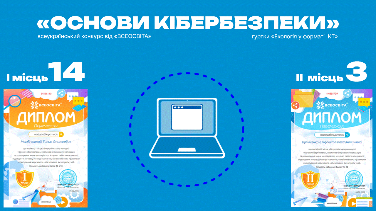 Небезпека всесвітньої павутини чатує на нас! І їй треба давати відсіч. Своїми знаннями та навичками:) Тож напередодні Дня безпечного Інтернету (Safer Internet Day) вихованці гуртків «Екологія у форматі ІКТ» (керівник – Роман Муржак) перевірили себе, взявши участь у Всеукраїнському конкурсі "Основи кібербезпеки» від «Всесовіта».