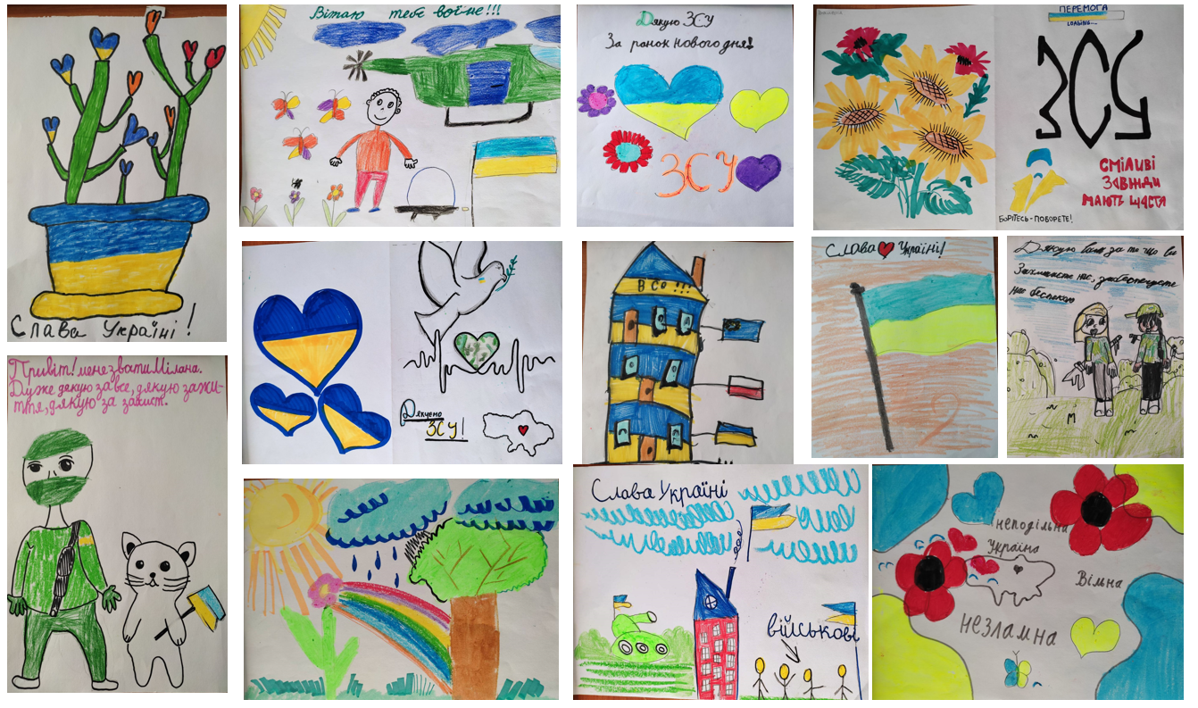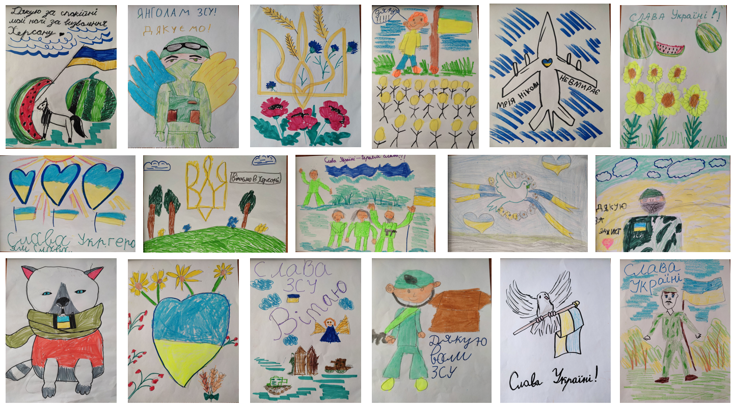 І щоразу до кожного величезного мотка прикладаються часточки дитячого тепла – малюнки чи листівки. Цього разу приклали малюнки дітей незламного Херсона. Вихованці зразкової студії образотворчого мистецтва «Метелик» (керівниці: Олеся Фахрадова, Віта Лисенко) малювали їх з неабияким трепетом та любов'ю.