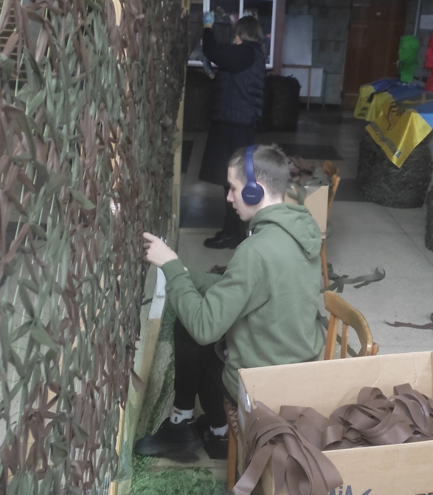 Львівська волонтерська організація об’єднала людей з різних куточків: Львова, Харкова, Луганська, Нової Каховки, АР Крим, Дніпра і, звісно ж, Херсона. До неї долучилися заступниця директора Ганна Наумович зі своїм сином Олександром. Це вже другий рік їхнього волонтерства у складі організації, за плечима якої сотні кілометрів маскувальних сіток.
