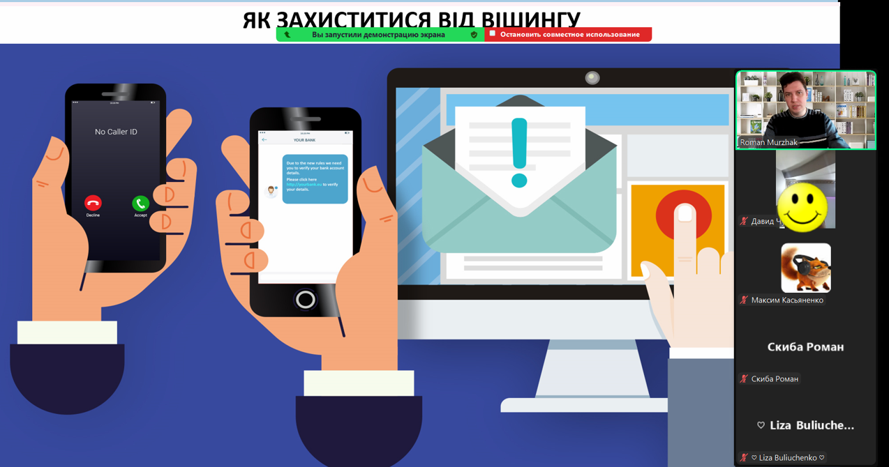 Як це все проходило? Розглядали актуальні теми, що стосуються власної кібербезпеки: кетфішинг, смішинг, фішинг, вішинг (ми про деякі навіть не чули). Брали участь у Всеукраїнському конкурсі "Основи кібербезпеки" й отримали 60 дипломів. Проходили авторський вебквест "Інформаційна та кібербезпека в інтернеті" та отримали 185 відзнак про успішне проходження.