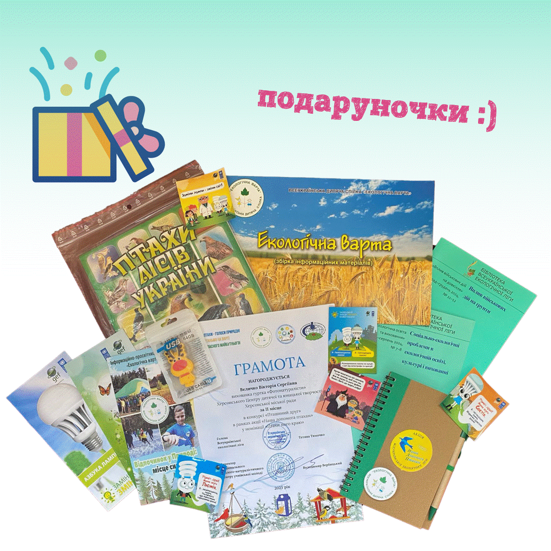 Цей навчальний рік сповнений приємностями у вигляді подаруночків :) Від організаторів конкурсу «Пташиний друг» Всеукраїнської акції «Наша допомога птахам» Вікторія Величко, вихованка гуртка «Фотонатуралісти» (керівниця – Наталя Величко), окрім грамоти переможця, отримала купу корисностей :)