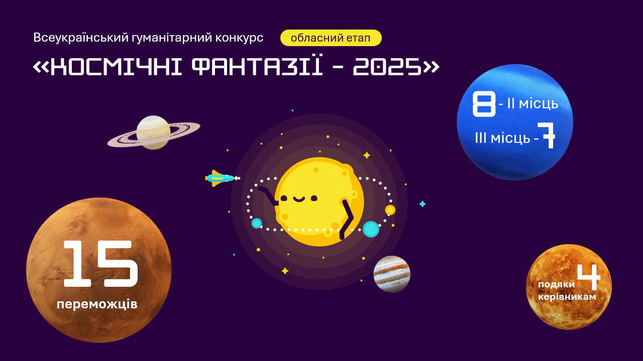 Іноді навіть маленькі фантазії здатні на великі перемоги :) Космічні! Маємо 15 переможців на обласному етапі Всеукраїнського гуманітарного конкурсу «Космічні фантазії – 2025».