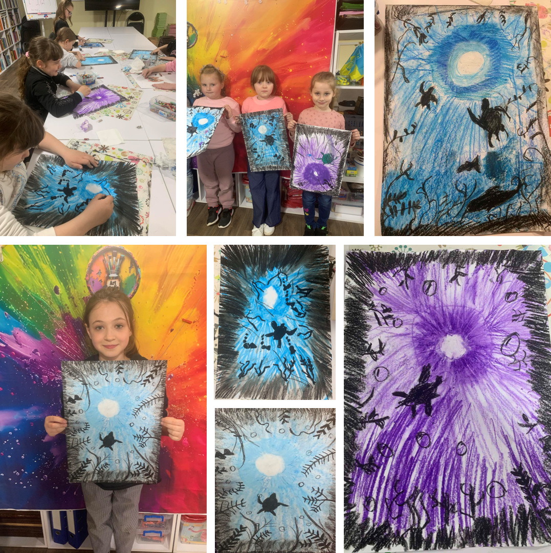 Уявімо, що ми пірнаємо у синю тишу. Глибоко-глибоко, де пробивається світло... А тепер просто підіймемо очі. Ой, маленька черепашка :) Пливімо за нею... до самого сонця! Разом із вихованцями зразкової студії образотворчого мистецтва "Метелик" (керівниця — Олеся Фахрадова). Малюймо свою підводну історію!