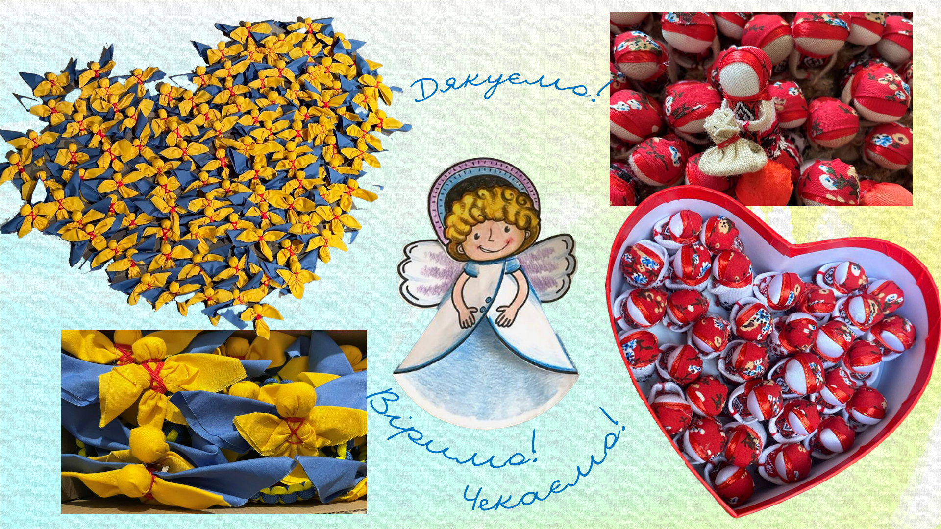 А в тій коробці часточка дитячої любові, віри та надії – жовто-блакитні янголики, барвисті ляльки-мотанки та сердечка з побажаннями. Зроблені душею. Із щирою вдячністю. З посилом оберегу тим, хто щохвилини боронить наше життя.