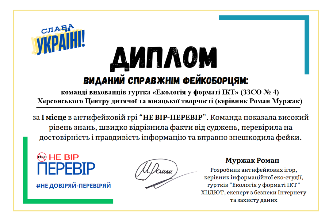 «Треба перевірити!», — вкотре наголошує Роман Муржак, керівник гуртків «Екологія у форматі ІКТ», ініціатор інформаційно-просвітницької онлайн-кампанії з медіаграмотності. В ігровій формі :)