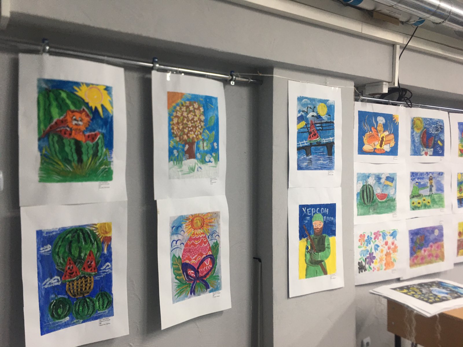 100 творчих робіт! Стільки малюнків вихованців зразкового художнього колективу студії образотворчого мистецтва «Метелик» (керівниці: Олеся Фахрадова, Віта Лисенко) прикрасили приміщення-укриття Херсонської обласної державної адміністрації.