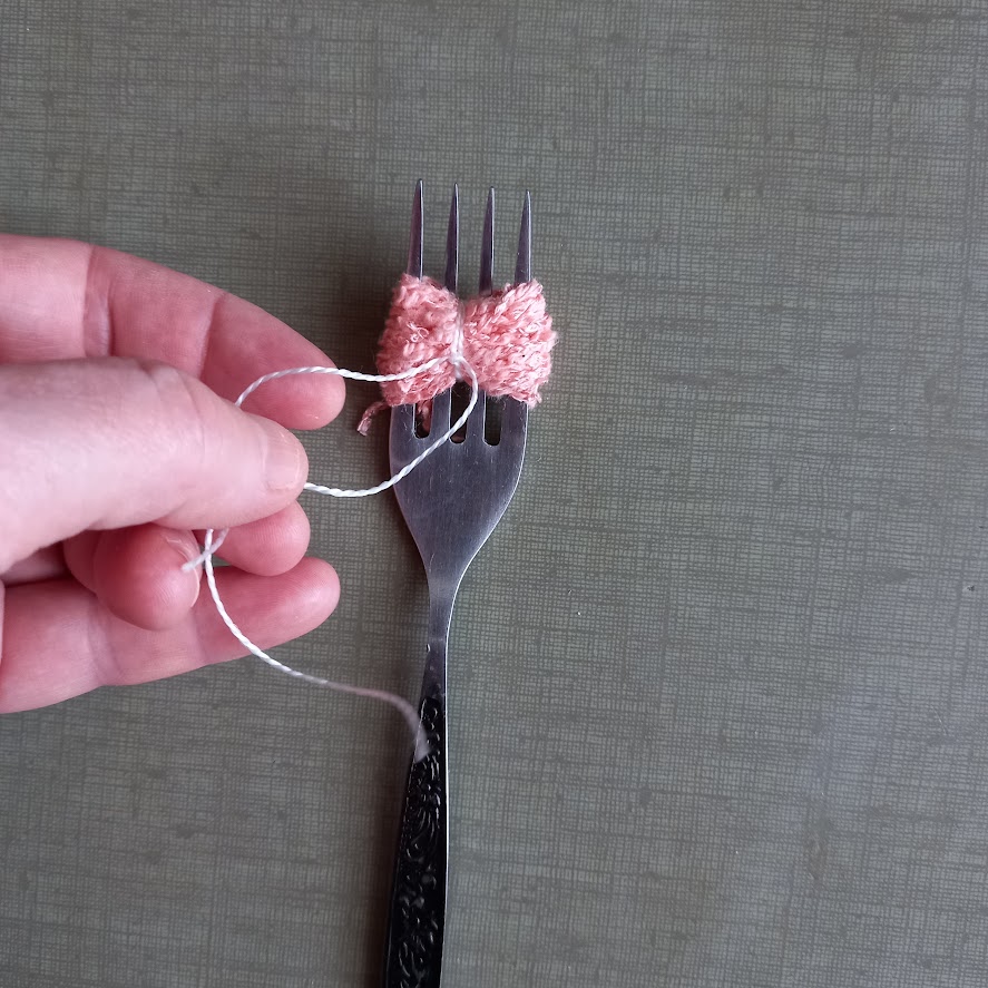 На виделку робимо 20 намотувань. Перев'язуємо посередині міцно.