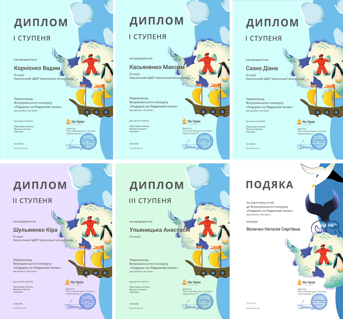 Вихованці гуртків "Біологія" (керівниця — Наталя Величко) стали учасниками Всеукраїнського конкурсу "Подорож на Південний полюс" (від "На Урок") й здобули три І місця, одне ІІ та одне ІІІ місце. А також нам передавали вітання... пінгвіни :)