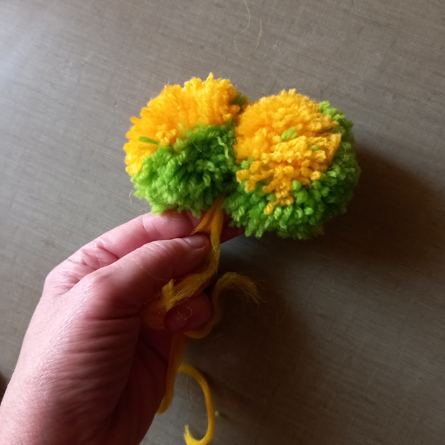 Крок 5. З’єднайте між собою пампони. Підрівняйте ножицями форму. Тіло папужки готове!