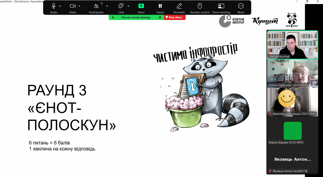 Як розпізнати фейки про Чорнобиль? Запитайте у наших вихованців! Цього разу раунди гри «НотаЄнота» ми присвятили Міжнародному дню пам’яті про чорнобильську катастрофу та роковинам Чорнобильської трагедії. Разом із Романом Муржаком, керівником гуртків «Цифрова грамотність», учасником European Digital Education Hub, провели 13 онлайн-ігор для 250 юних учасників. Розбирали ворожі маніпуляції навколо Чорнобиля та радіації, на повну вмикали критичне мислення та вчилися бачити правду там, де інші вірять на слово. За що й отримали чимало дипломів :)