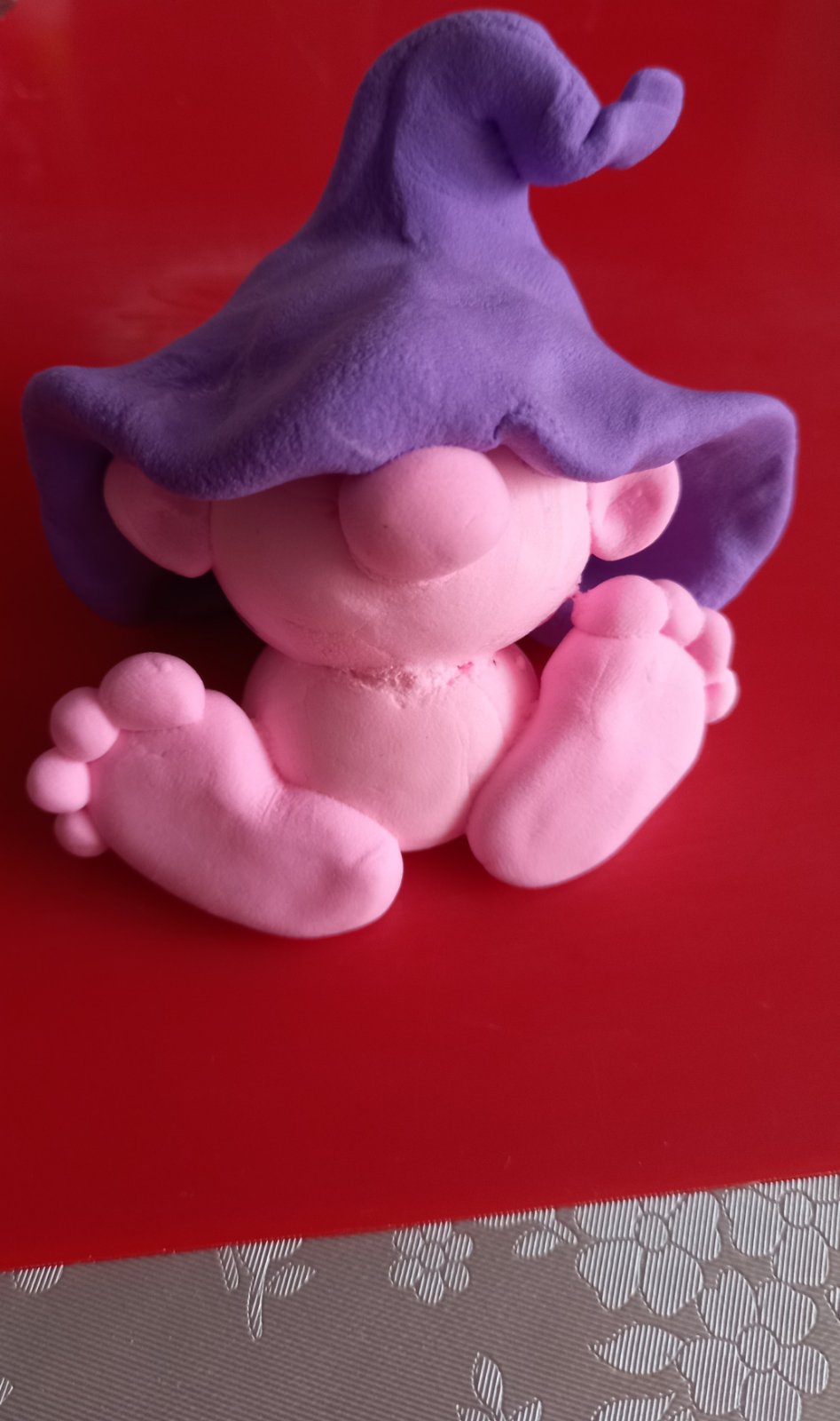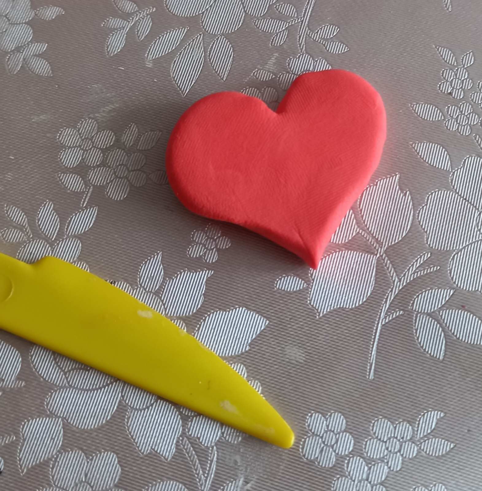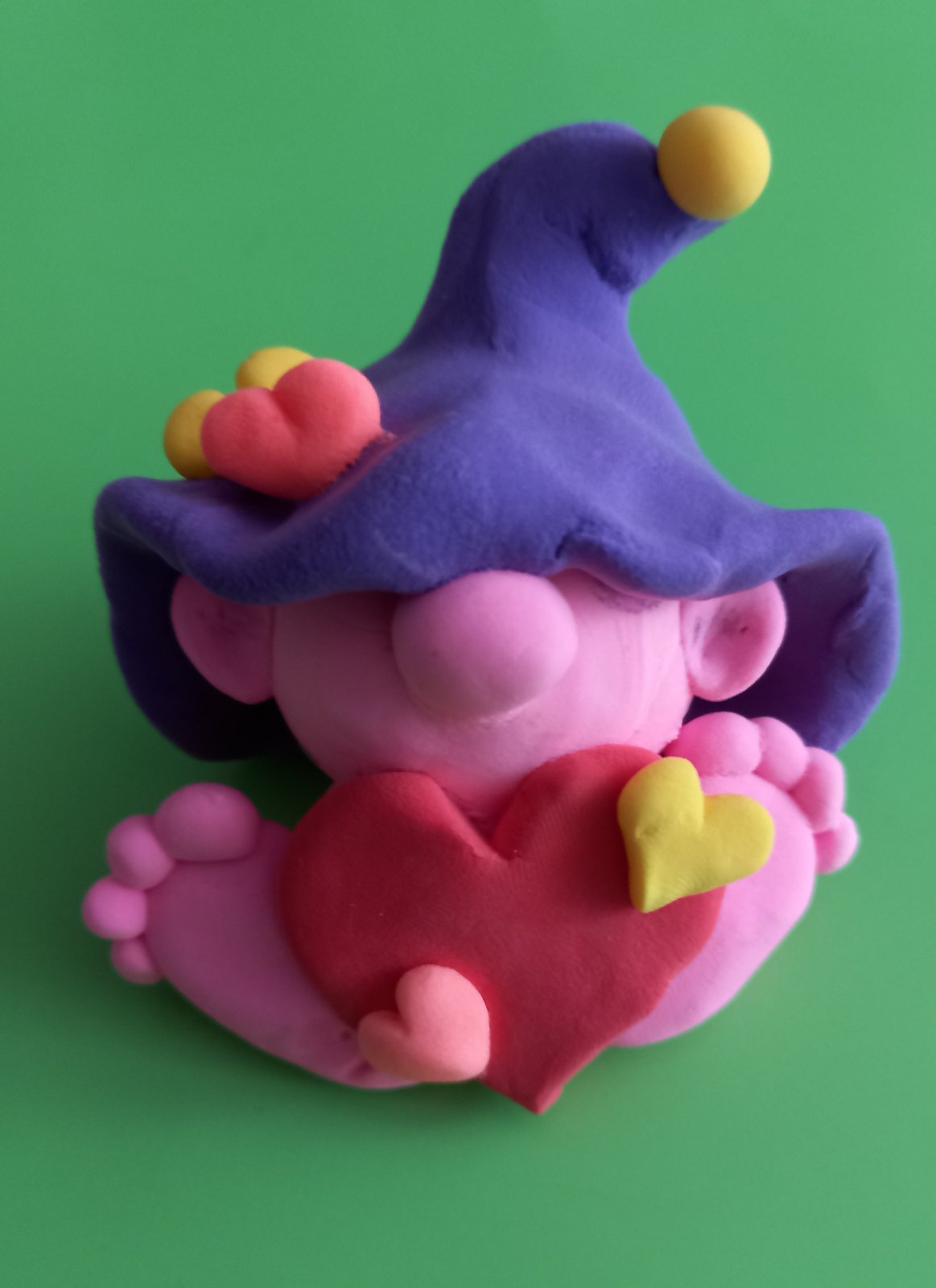 8. Приєднуємо. Для декору зліпимо ще маленькі кольорові сердечки. Отакий в нас вийшов закоханий гном.