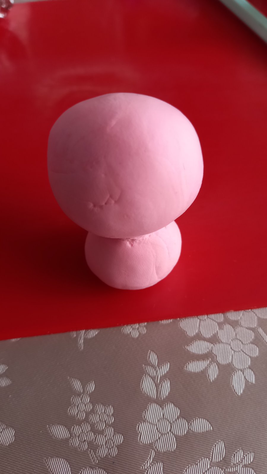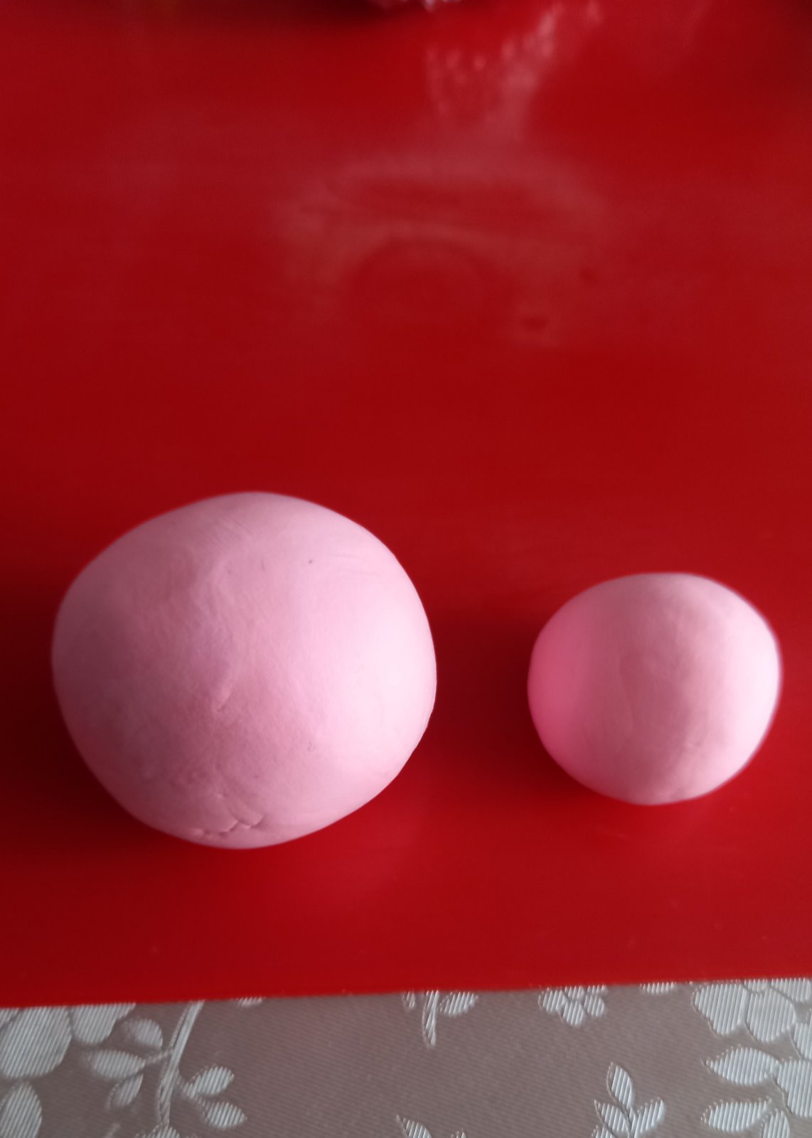 1. Спочатку формуємо з фольги дві кульки. Обліплюємо пластиліном тілесного або рожевого кольору. Можна не використовувати фольгу, а скатати кульки тільки з пластиліну.