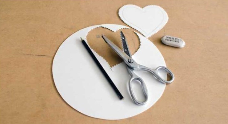 На щільному картоні намалюйте серце бажаної форми та розміру. Виріжте його ножицями "зигзаг".