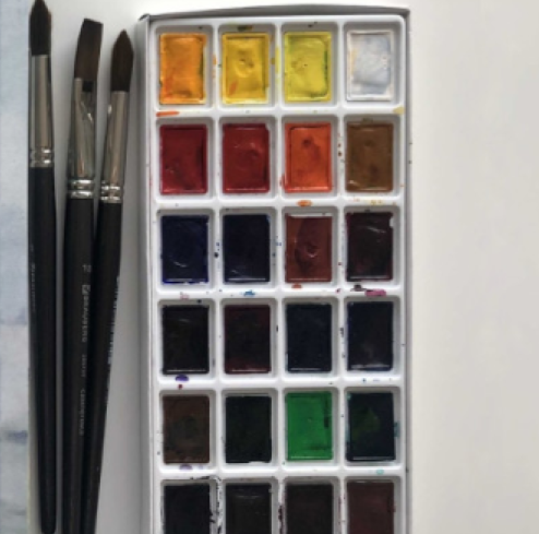 Акварельні фарби та пензлики.
