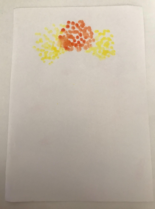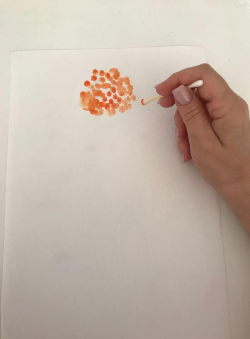 Беріть іншу вухочистку, змочуйте водою, віджимайте легко, набирайте на неї жовтий колір та ставте крапки.