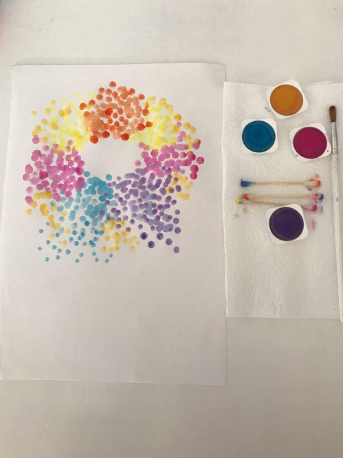 Робіть теж саме, але міняйте кольори, поки у вас вийде коло з пучків крапок.