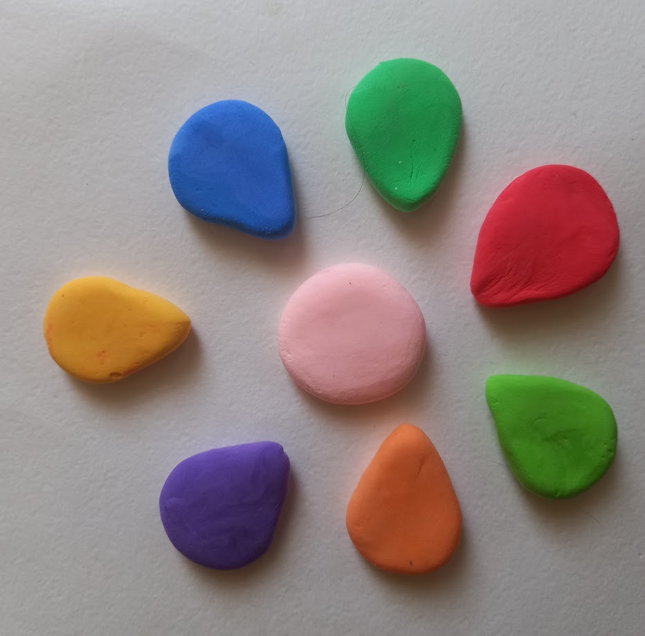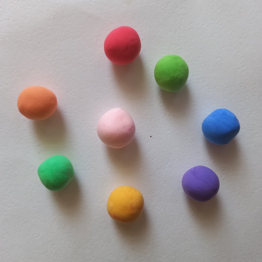 Скатуємо 7 кольорових кульок (розмір: як лісовий горішок).