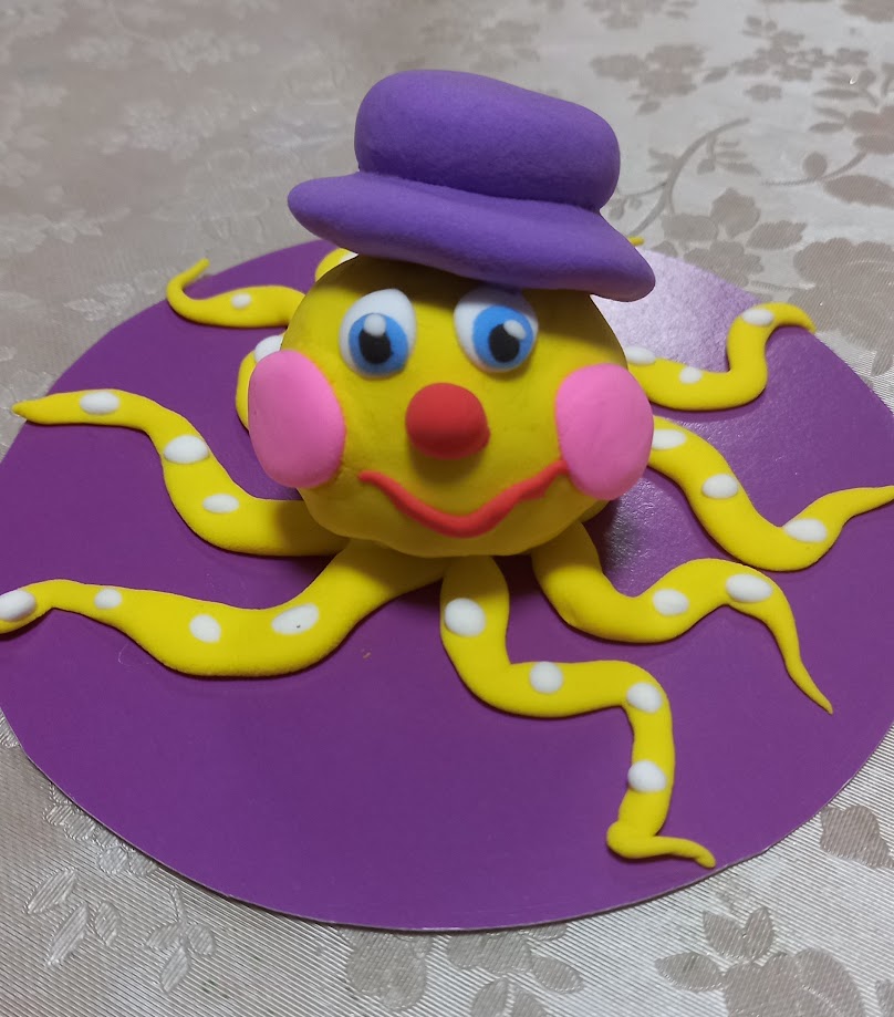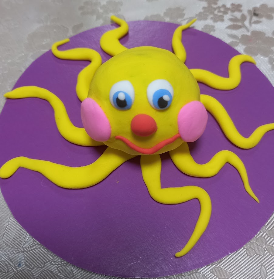 Для медузи ліпимо очі, носик, щічки, ротик.