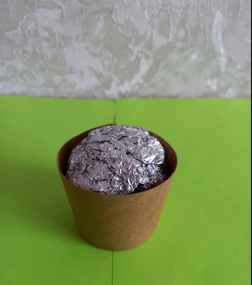 Забиваємо фольгою маленький горщик або паперовий стаканчик.