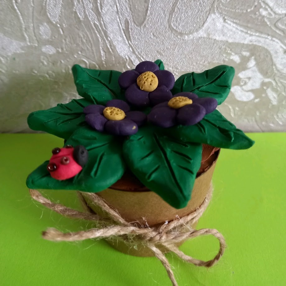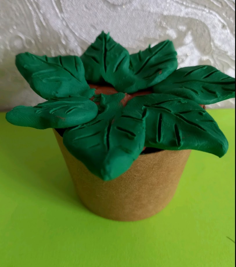 Приліплюємо до поверхні горщика. Це будуть листочки. Стекою продавлюємо прожилки.