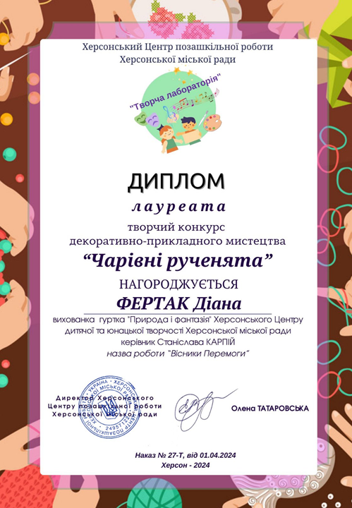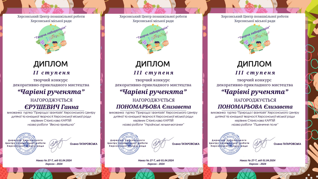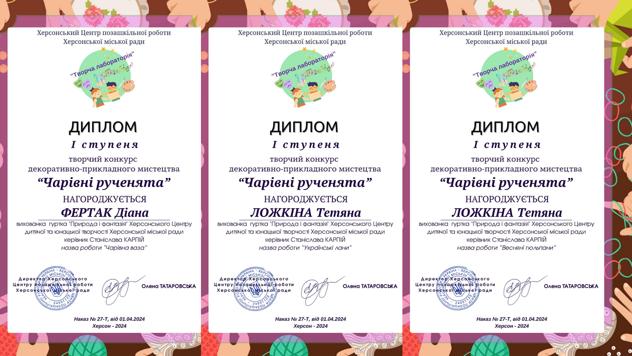 Новини Новини 15 квітня 2024 Ще + у скарбничку творчих здобутків! Надрукувати E-mail Попередня стаття: До Міжнародного дня культури та Всесвітнього дня мистецтв Попередня наступна стаття: Цікавий факт "зі ста нулями" Наступна