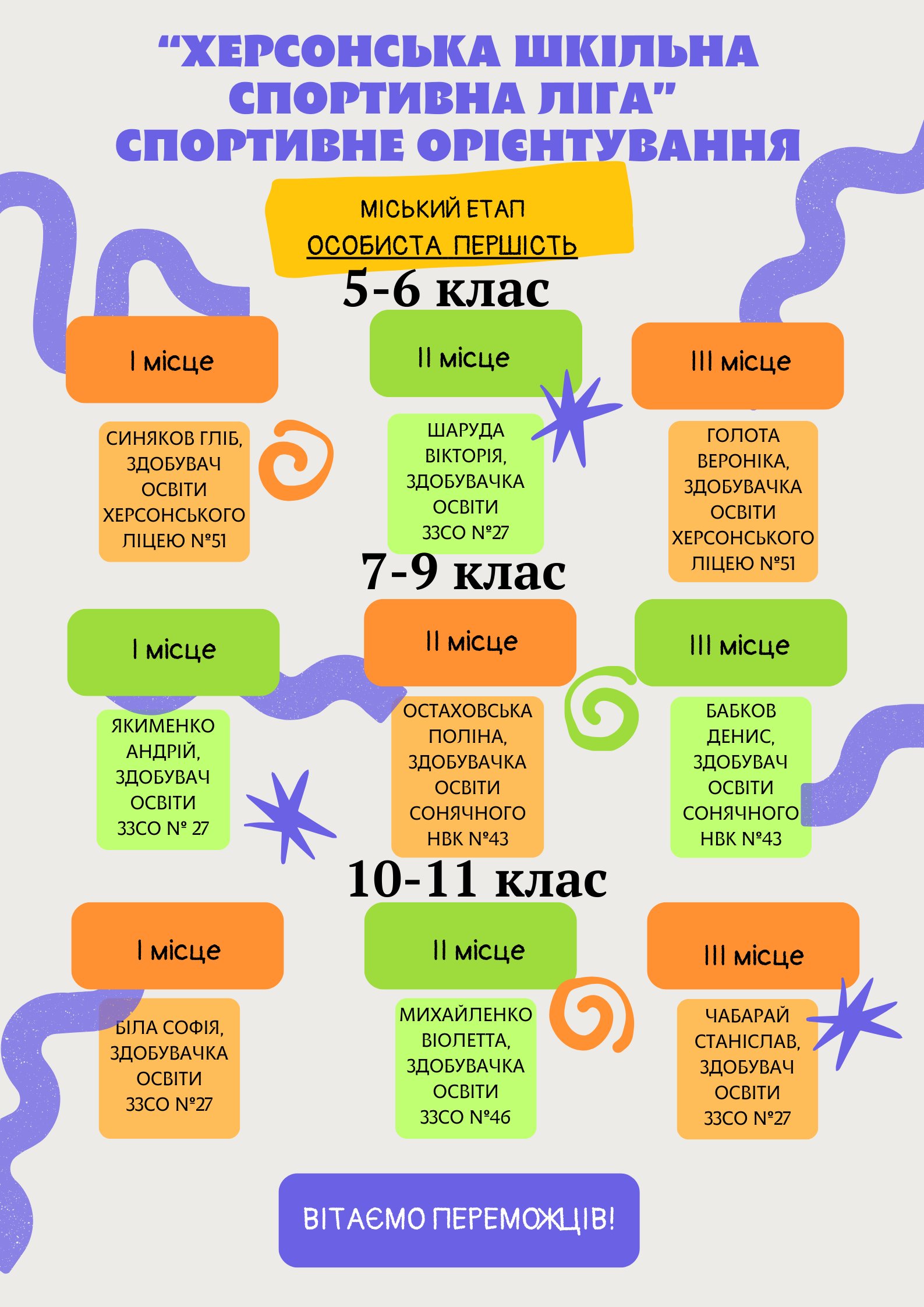 Протягом квітня Центр проводив міський етап змагань «Херсонської шкільної спортивної ліги» зі спортивного орієнтування серед здобувачів освіти ЗЗСО під гаслом «РАЗОМ ПЕРЕМОЖЕМО».
