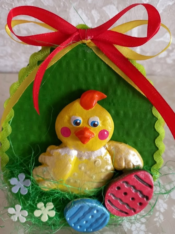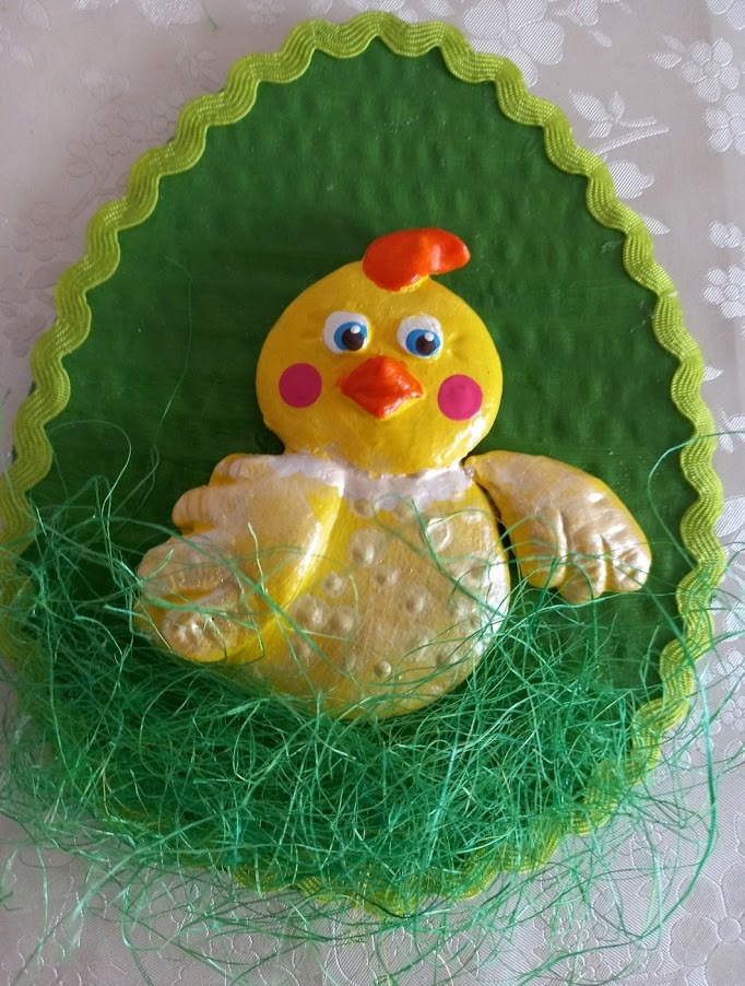 Приклеюємо курочку до основи.Та Приклеюємо декоративну травку.
