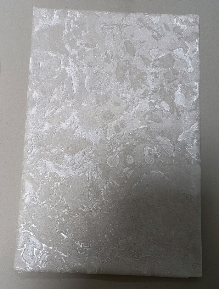 Вирізаємо з коробочного картону прямокутник розміром А4. Обклеюємо його фактурним папером або залишками шпалер. Використовуємо для цього клей Дракон. Це буде основа.