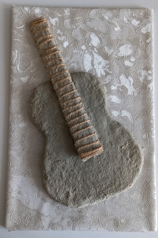 З мотузки, обкрученої по ручці, зробимо струни. Приклеюємо до основи.