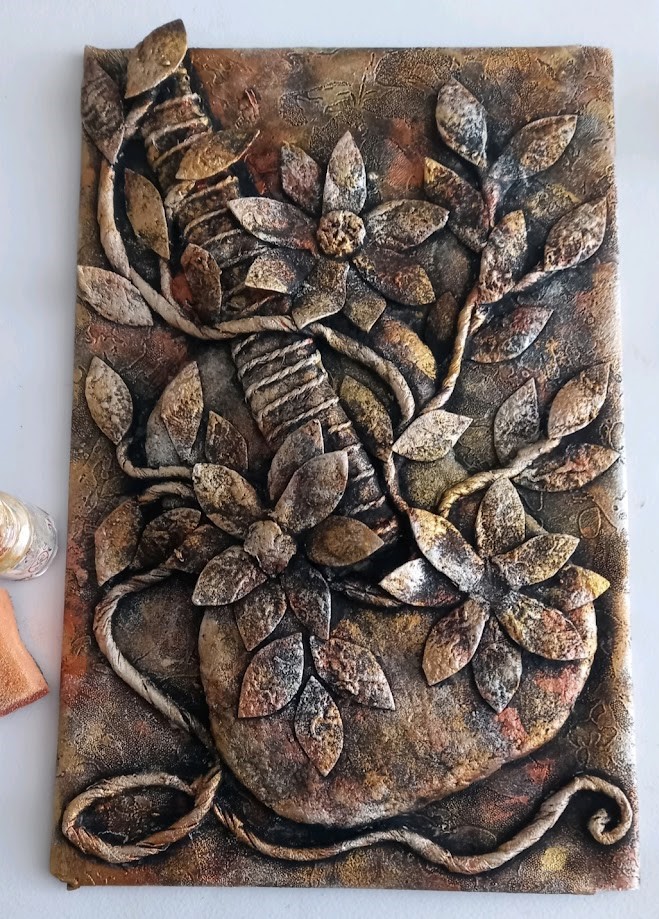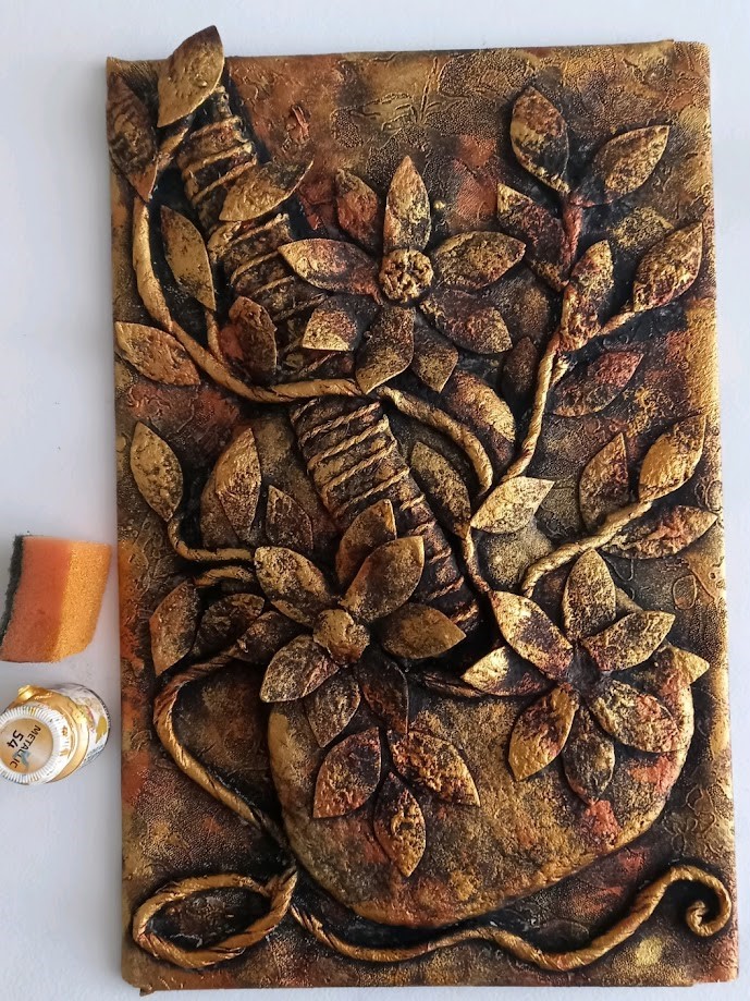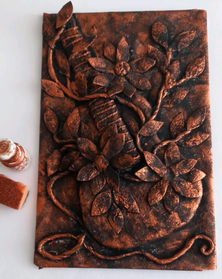 Коли чорна фарба висохне, наносимо губкою мідну фарбу.