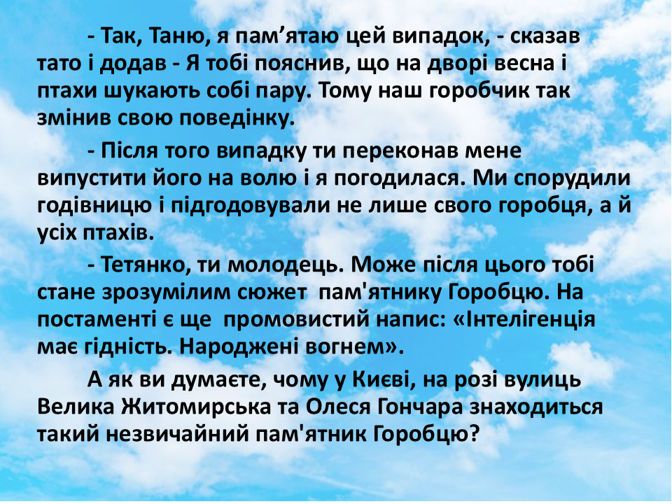 Куди не глянь — усюди вони. Горобці! І, правду кажучи, ми, люди, вже настільки звикли до них, що майже не помічаємо... Проте, дарма! І доведуть це вихованці гуртка "Основи фенології" разом із керівницею Наталією Козуб. Тож, приготуйтесь: буде цікаво!