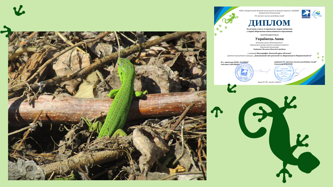 Минулого разу перемогу принесли горобчики у дзьобику, зараз — рептилії на хвостику :) Й не дивно! Це ж вихованці гуртків "Фотонатуралісти" (керівниця - Наталя Величко).
