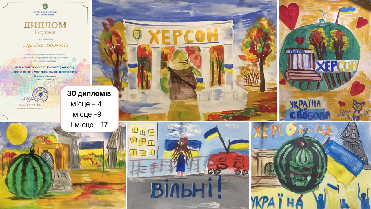 Які вони, барви рідного міста? Теплі. Рідні. І, що найголовніше, синьо-жовті :) Саме такими кольорами сповнені конкурсні малюнки наших вихованців, які отримали одразу 30 перемог у міському (заочному) конкурсі образотворчого мистецтва "Барви рідного міста". Рідні серцю малюнки малювали вихованці зразкового художнього колективу студії образотворчого мистецтва "Метелик" (керівниці: Олеся Фахрадова, Віта Лисенко) та гуртків "Студія образотворчого мистецтва" (керівниця — Світлана Бандурська).