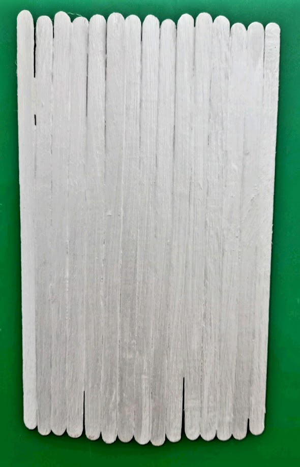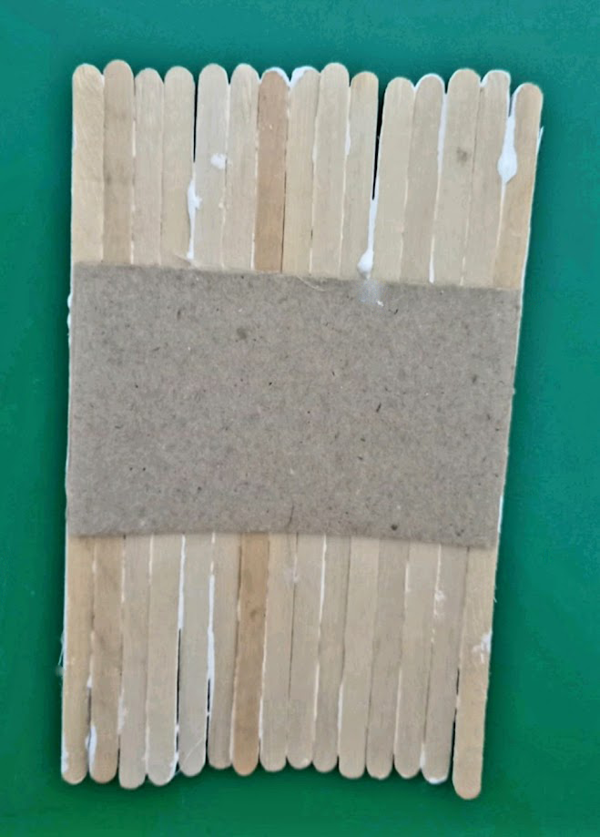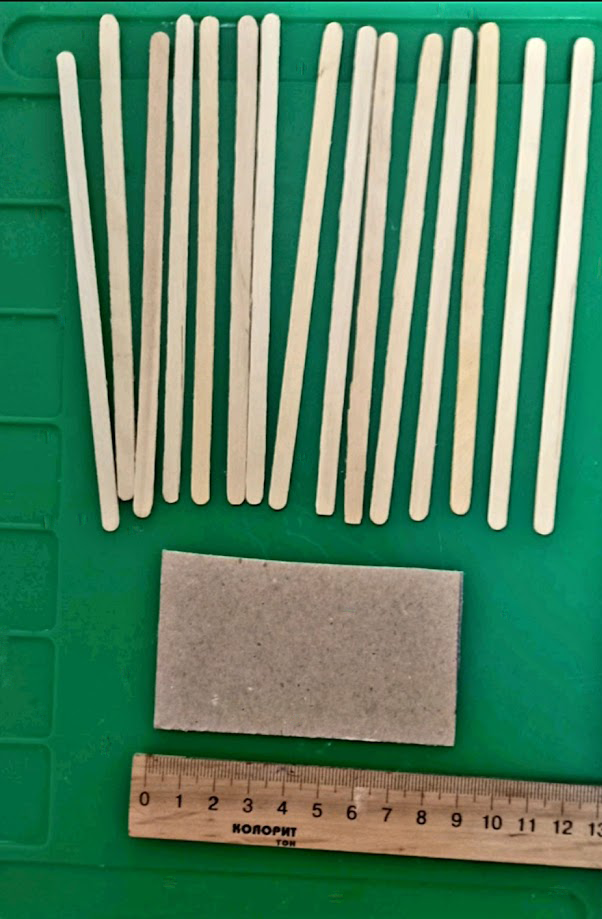 Крок 1. 15 паличок приклеюємо щільно на картон. Розмір картону на фото.