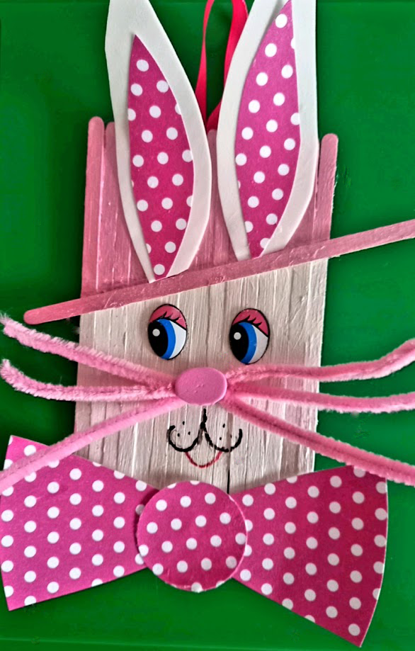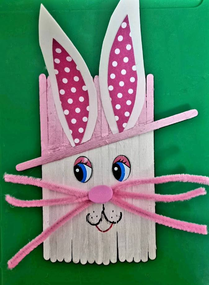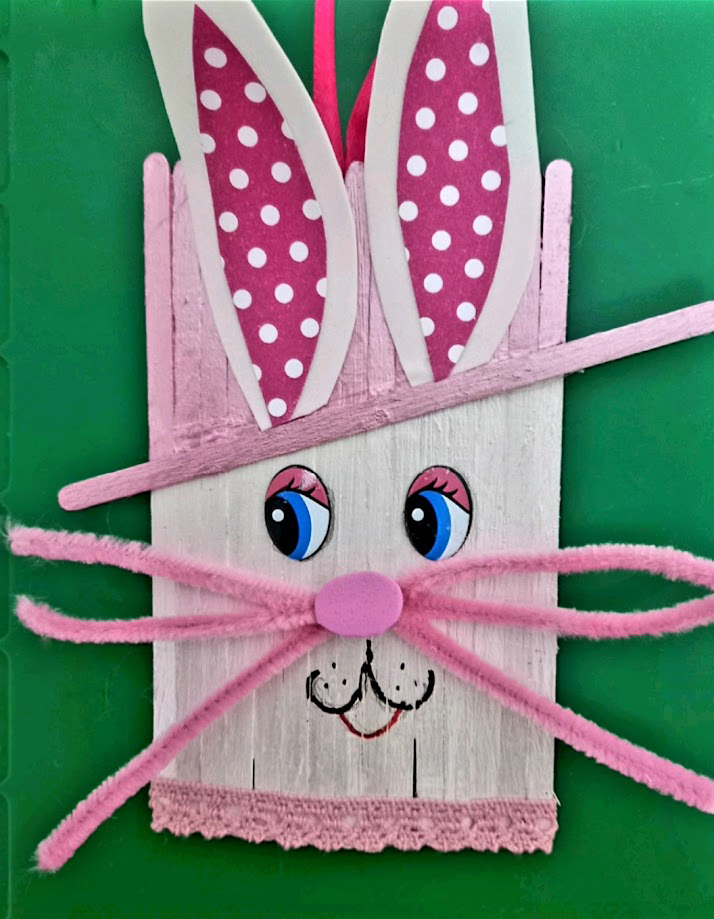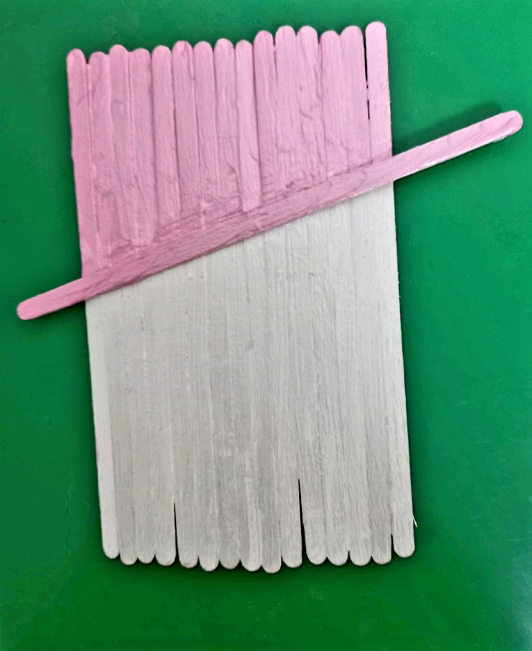 Крок 4. Приклеюємо одну паличку під нахилом. Це буде капелюх. Розфарбовуємо у вибраний колір, наприклад, рожевий.