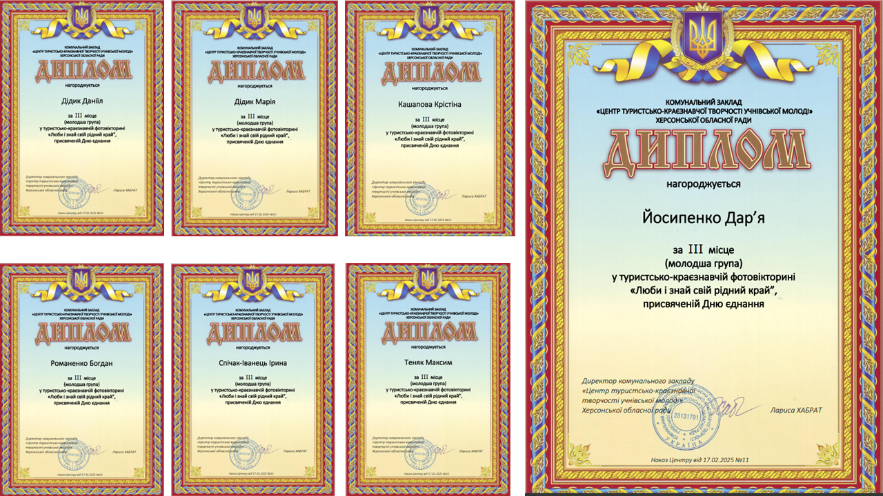 А ще перемагаємо в обласній туристсько-краєзнавчій фотовікторині "Люби і знай свій рідний край". Вихованці гуртка "ЕКОLand" (керівниця - Наталя Костіна) посіли сім ІІІ місць!