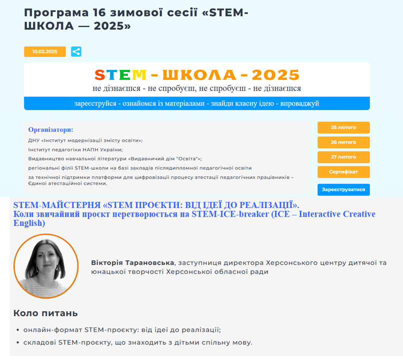 Вже вкотре ділимося досвідом з реалізації STEM-освіти :) Цього разу на 16 зимовій сесії "STEM-школа — 2025", що традиційно об'єднала для навчання освітянську спільноту з усієї країни. Усіх тих, хто любить STEMити! І ми серед них :)