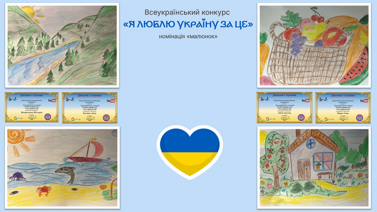 "Я люблю Україну за це" — малюнки на таку теплу тематику малювали вихованці гуртка "ЕКОLand" (керівниця — Наталя Костіна) для однойменного всеукраїнського конкурсу. Й стали переможцями — чотири дипломи І ступеня. Адже любов завжди перемагає!