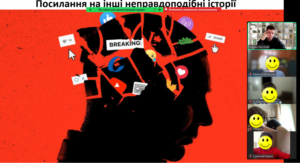 Факти – перевіряйте! Фейки – розпізнавайте! Маніпуляції – уникайте! Це головні меседжі активностей до Міжнародного дня перевірки фактів. Керівник гуртків «Екологія у форматі ІКТ» Роман Муржак провів більше двадцяти тематичних онлайн-зустрічей для 250 здобувачів освіти ЗЗСО № 4, 36, 45, 55, гімназії № 14 та вихованців гуртків.