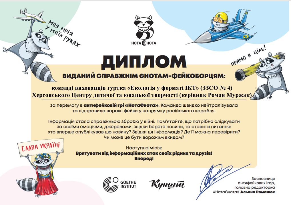 Й отриманий диплом про успішне проходження усіх ігрових завдань – красномовне цьому підтвердження.