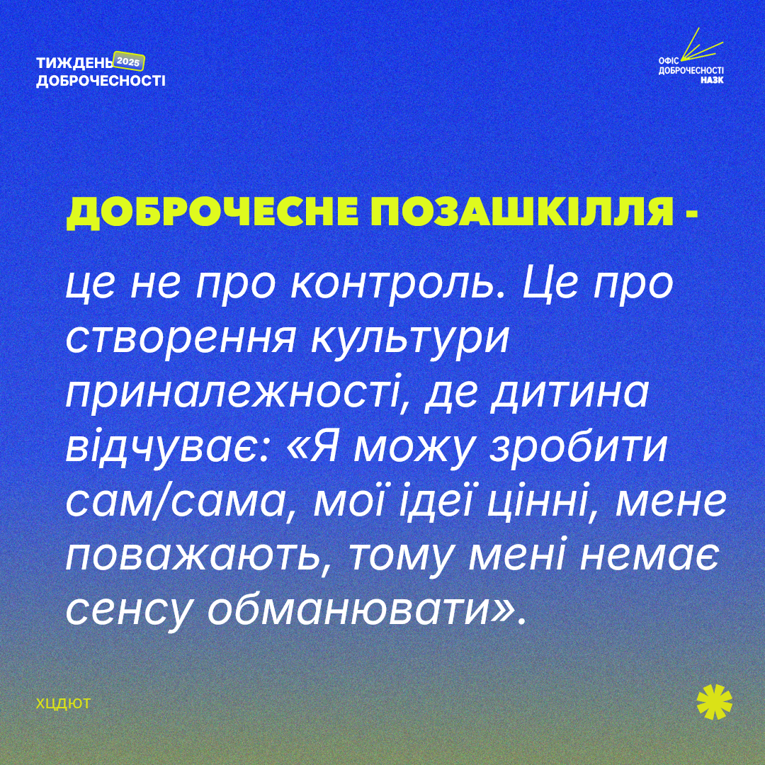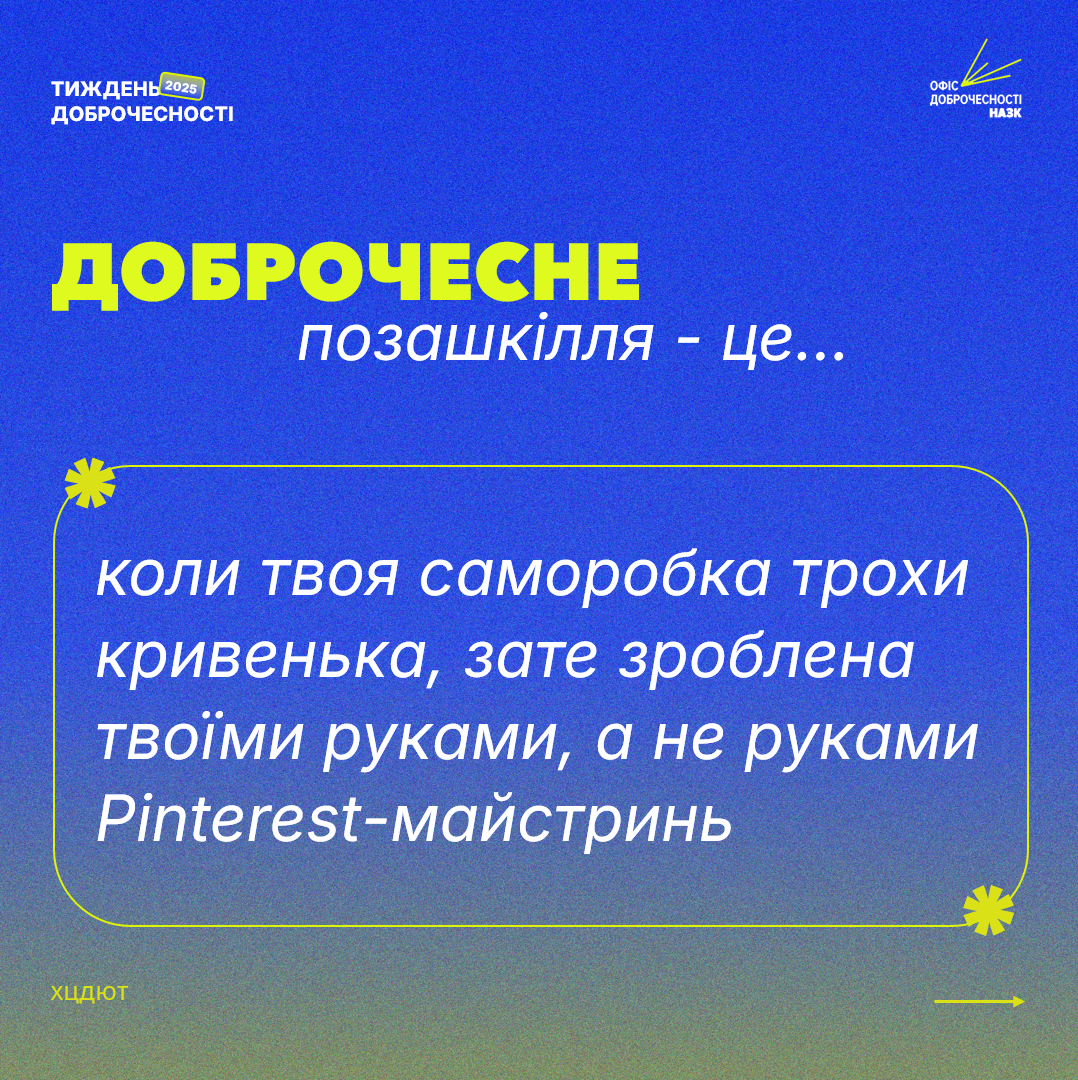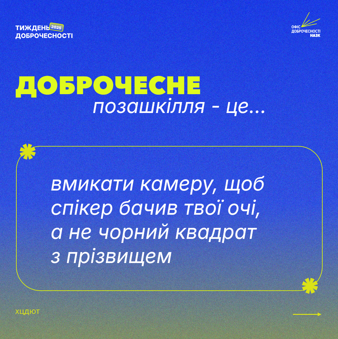 Позашкілля — це територія свободи. Але свобода неможлива без правил чесної гри! Рівні можливості, повага до авторства, чесна конкуренція — згодні? Створюймо середовище, в якому хочеться творити чесно!