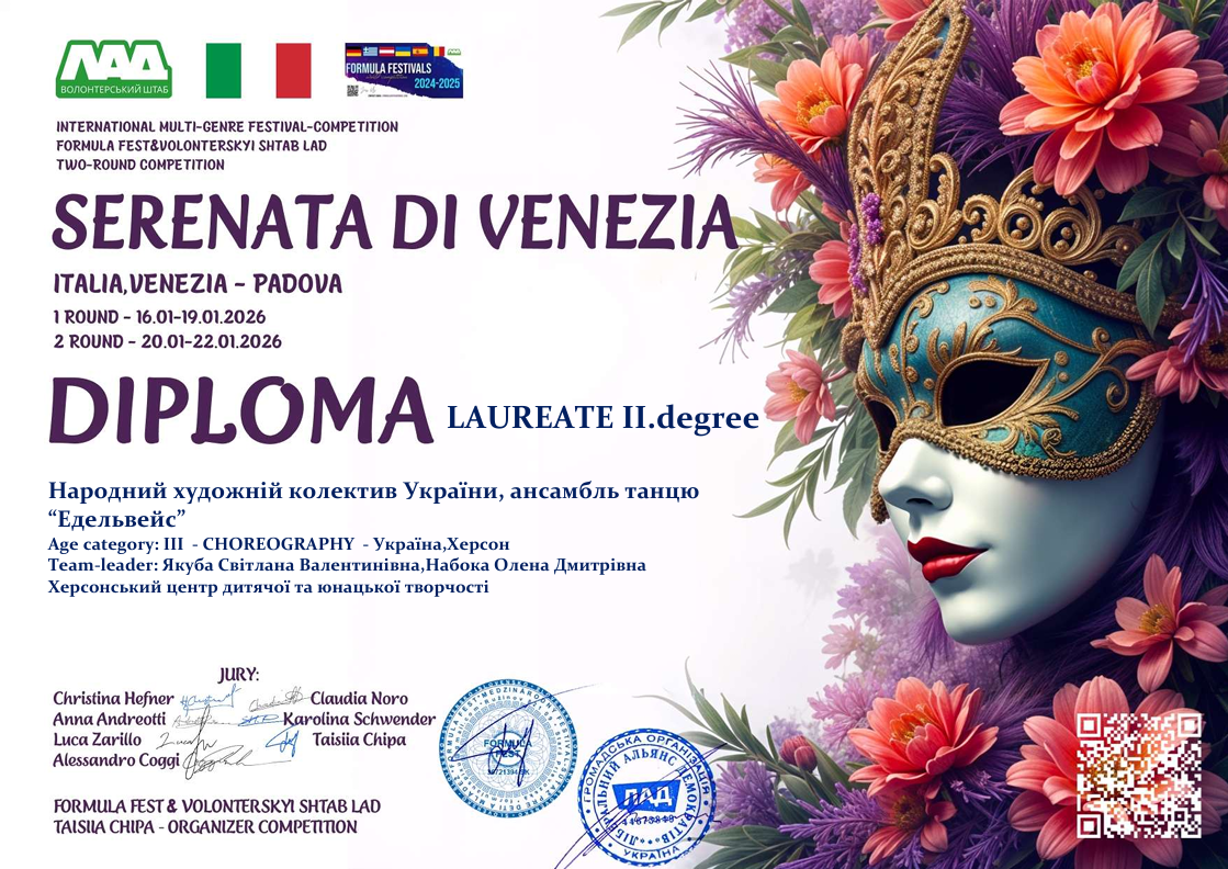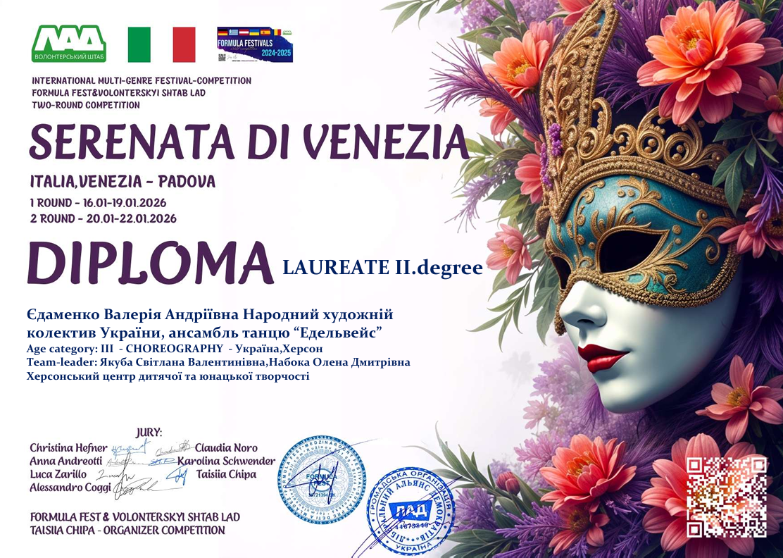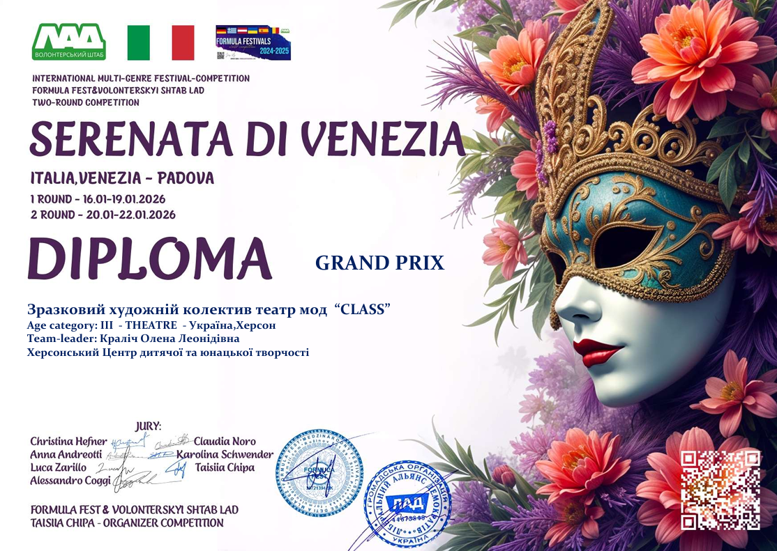 "Ми з особливою радістю хочемо відзначити колективи, які продемонстрували високий рівень підготовки та злагоджену командну роботу; представили театри моди з унікальними, продуманими костюмами; вразили журі креативним підходом та яскравим втіленням венеційського стилю; змогли передати атмосферу Венеції — її таємничість, романтику та мистецький шарм."
