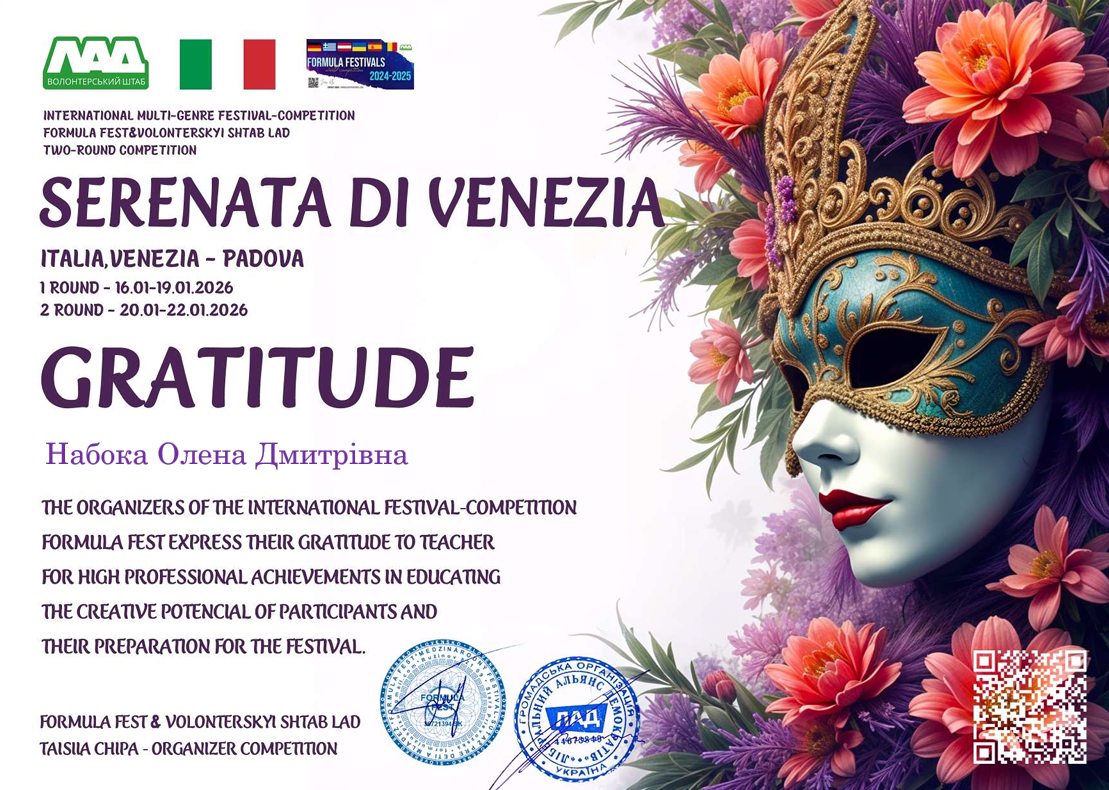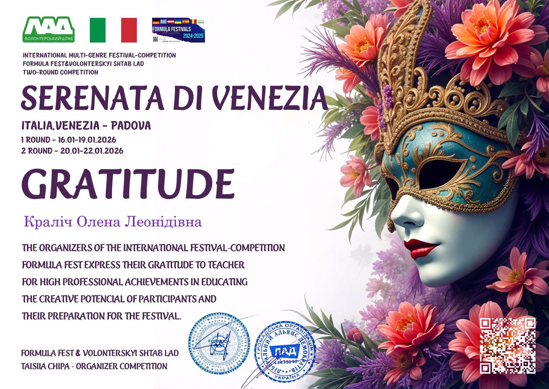 Адже наші вихованці дистанційно взяли участь у Міжнародному благодійному двотуровому конкурсі мистецтв "Венеційська серенада" (Італія). Й «повернулися» з неймовірними результатами!