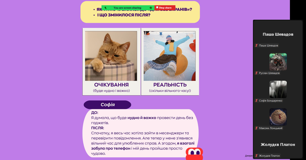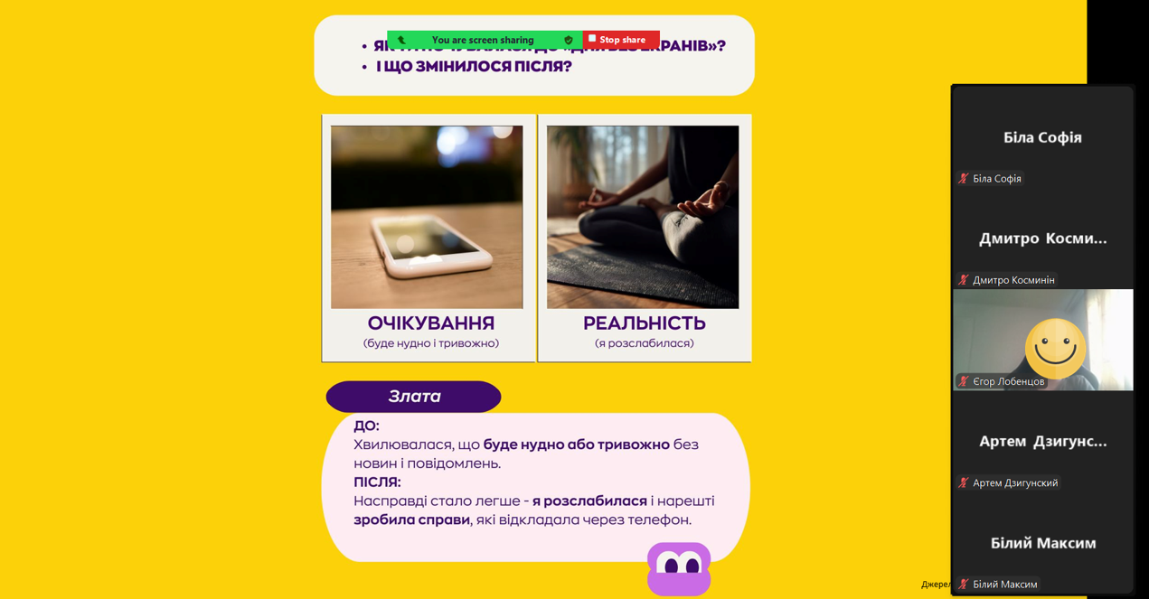 Під час 15 зустрічей 186 здобувачів освіти переконалися, що світ навколо яскравіший за найкрутіший дисплей, а щирі емоції не треба ставити на зарядку. Завдяки переконливим матеріалам від Dignity Online ми зрозуміли, що бути «поза зоною» — це не страшно, а корисно. Стільки часу для улюблених справ!
