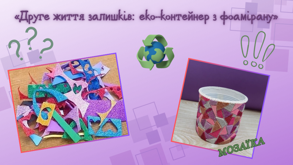 Маєте купу блискучих обрізків, які шкода викинути? Маємо ідейку! А давайте збирати їх у яскравий пазл :) Усе просто: клеїмо мозаїку та отримуємо стильний ... еко-контейнер. Такий собі творчий релакс із користю для планети :) У наших вихованців гуртків "Арт-простір "Карамельки"" та керівниці-чарівниці Олени Краліч так завжди — все просто, корисно та креативно :) Ну що, затестимо разом?
