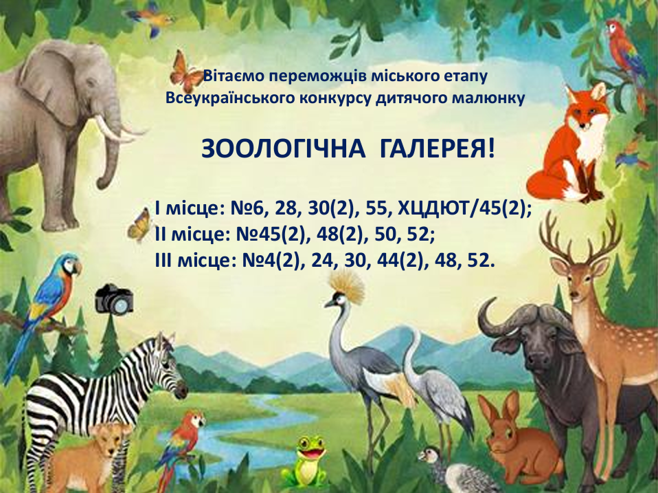 Підведено підсумки міського етапу Всеукраїнського конкурсу дитячого малюнка "Зоологічна галерея". Запрошуємо на вистаку робіт-переможців!